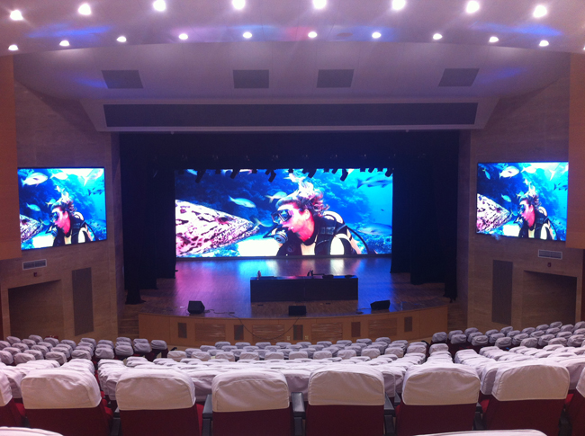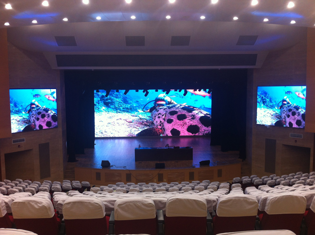 北京市第十二中學多媒體報告廳LED大屏幕系統(tǒng)順利驗收,該報告廳中間是P6全彩大屏幕總面積達到70平米,在大屏幕兩側為P3高清全彩顯示屏面積達到15平米。以下為該項目的驗收現(xiàn)場照片。