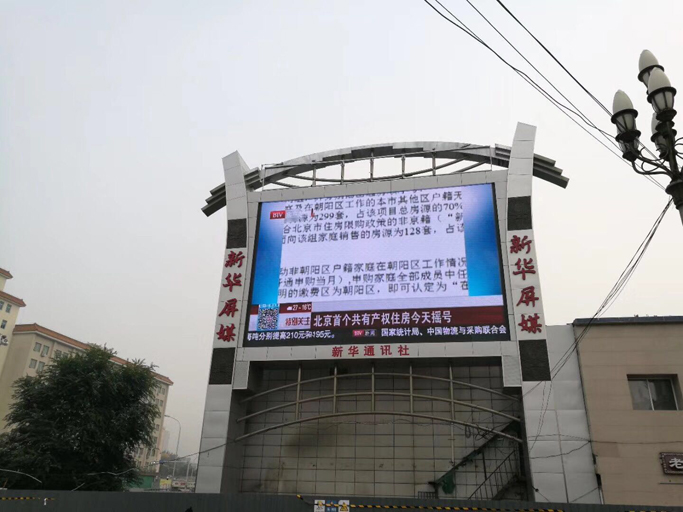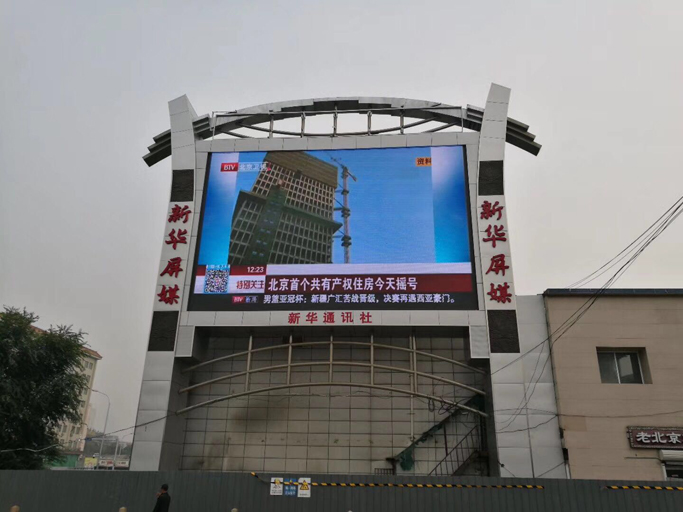 太極鵬發(fā)再添經(jīng)典案例----位于北京站廣場的新華社廣宣室外全彩大屏110平米順利完工!顯示效果完美